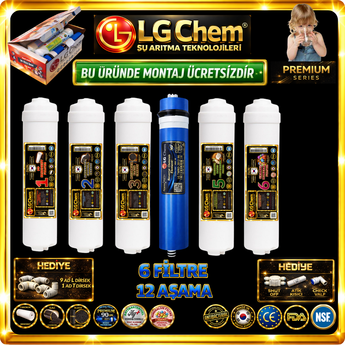 LG Chem PREMIUM 6 FİLTRE 12 AŞAMA KAPALI KASA SU ARITMA CİHAZI FİLTRE SETİ ÜCRETSİZ KURULUMDUR.